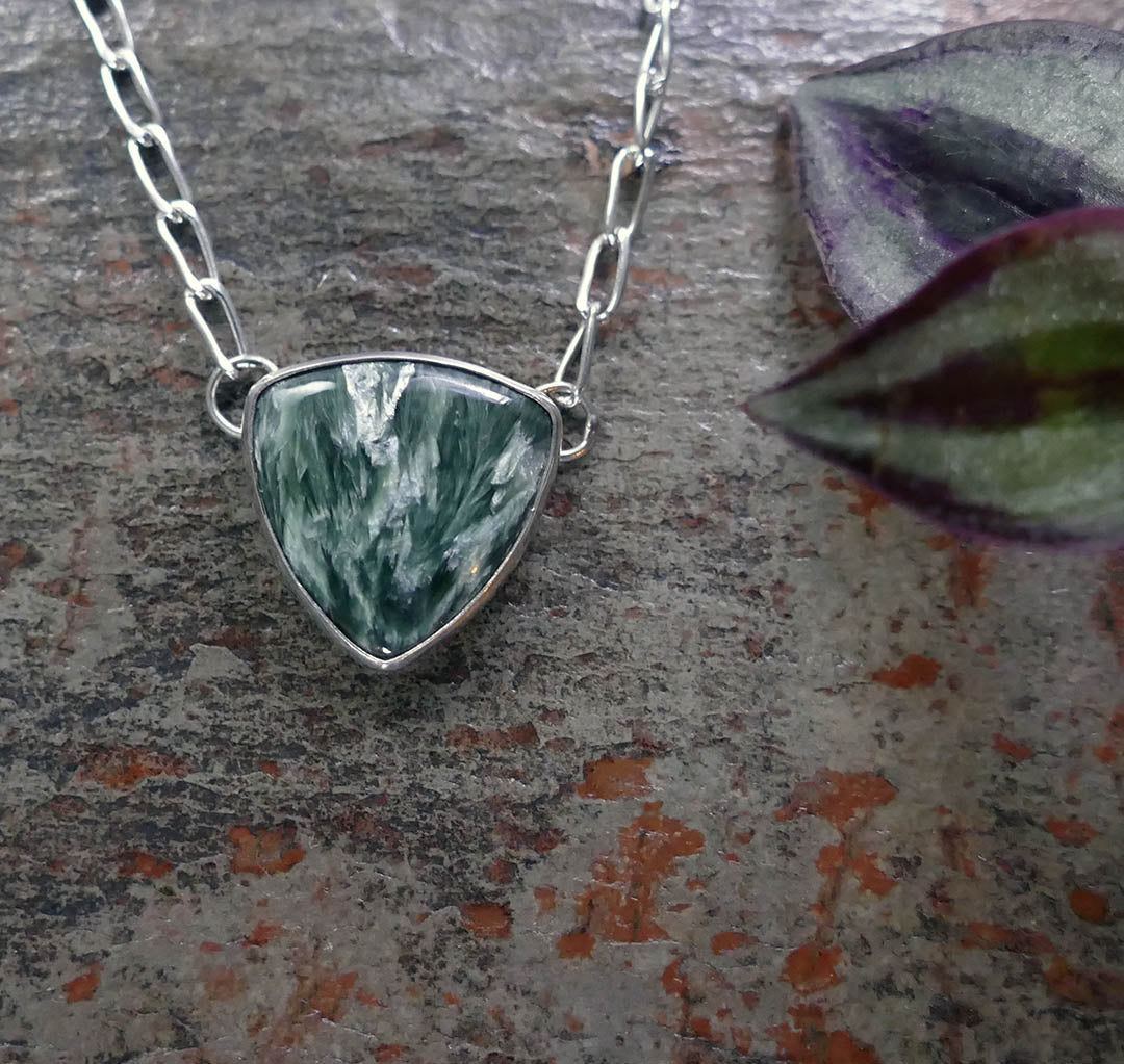 Large Oval Seraphinite Pendant set in .925 Sterling Silver